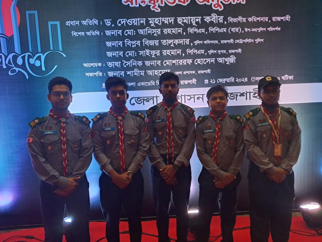 এই দিবস উপলক্ষে রাজশাহ জেলা প্রশাসক কর্তৃক আয়োজিত 'জাতীয় জীবনে একুশের চেতনা' শীর্ষক আলোচনা সভা, পরিষ্কার বিতরণ ও সাংস্কৃতিক অনুষ্ঠানে আমরা রাজশাহী পলিটেকনিক ইনস্টিটিউট রোভার স্কাউট গ্রুপ হতে ৫ জন রোভার সেচ্ছাসেবক হিসাবে অংশ গ্রহণ করি।