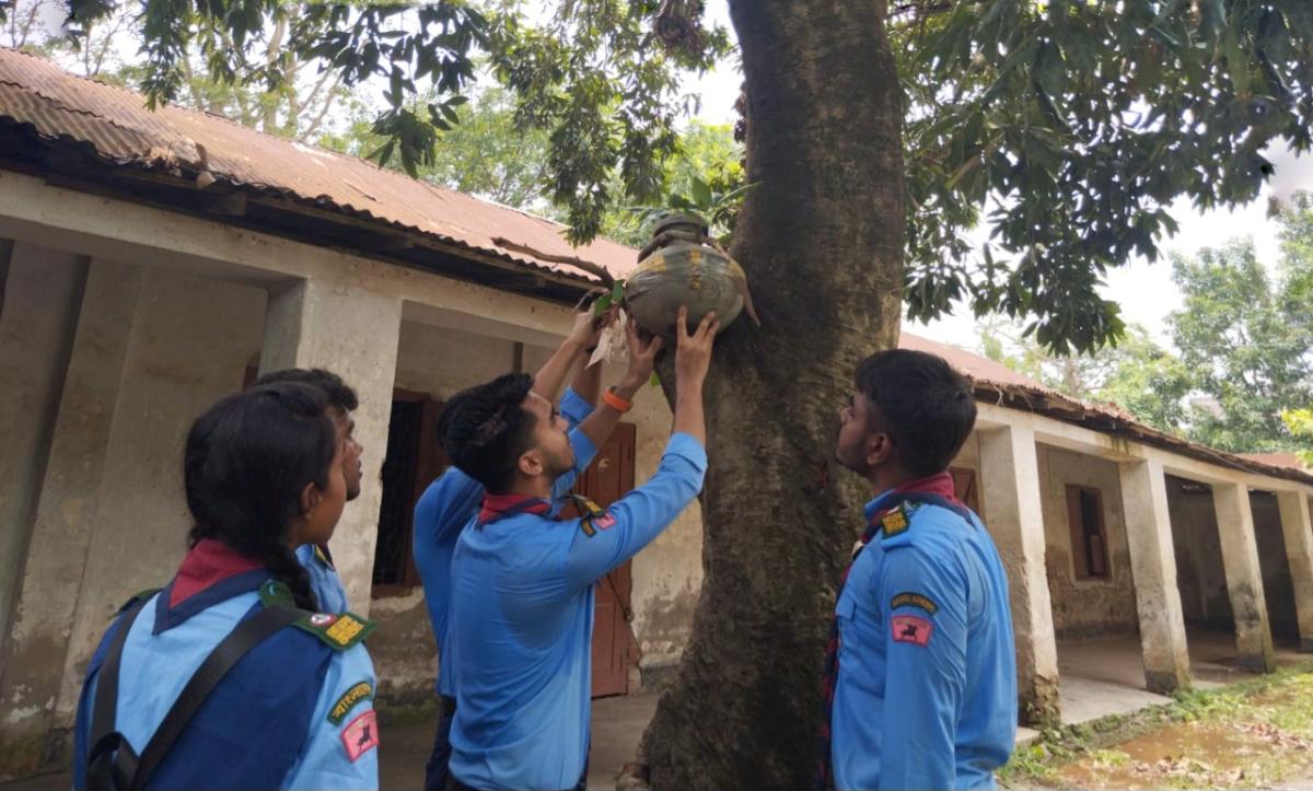 With the aim of building safe habitat for birds and bird conservation, on 5th June 2024, under the leadership Mr. Mostak Ahmed, Assistant Commissioner of Gazipur District Rover and Editor of Kazi Azimuddin College Rover Scout Group, we rover members planted birds in various trees of the college campus. SafeI have placed clay bones to build a residence.We think that this will make it easier to save birds and build safe nests for birds. And this will make the nature more beautiful.