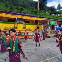 Cultural Festivity at Tarphel Primary School: Celebrating Heritage and Tradition On a bright and vibrant day in September, the grounds of Tarphel Primary School came alive with colors, music, and traditional dances. The occasion? The school’s Investiture Ceremony, coinciding with a grand cultural showcase that highlighted Bhutan’s rich heritage. Students dressed in traditional Bhutanese attire, proudly performed a beautifully choreographed traditional dance. The boys and girls, adorned in colorful costumes, moved with grace and elegance, reflecting the pride they have in their cultural roots. The school courtyard was decked out in bright yellow and green banners, adding a festive touch to the event. The national flag fluttered in the gentle breeze, a symbol of unity and pride for the entire school community. School leadership and staff sat at the edge of the performance area, enjoying the show and supporting their students. The Investiture Ceremony itself marked an important milestone, where student leaders were officially entrusted with their new roles and responsibilities, a step toward building leadership qualities from a young age. The day was filled with a sense of joy and accomplishment, as the students not only demonstrated their talents in dance but also their dedication to preserving the traditions that define Bhutanese identity. It was clear that events like these foster a strong sense of community, encouraging both students and teachers to work together in harmony while celebrating their shared culture.