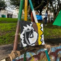 La experiencia inició con un reto práctico: las participantes debían construir un caballete utilizando la técnica del trípode, fomentando el trabajo manual, la creatividad y la colaboración. Este caballete simbolizaba la base sobre la cual cada una sostiene y proyecta su propia vida.