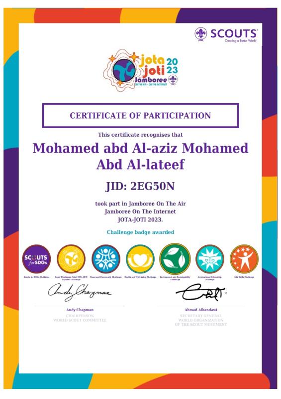 و الذي تنظمهما المنظمة الكشفية العالمية في الفترة من 20 إلى 22 أكتوبر 2023. JOTA-JOTI هو أكبر حدث كشفي رقمي في العالم يقام عبر الإنترنت وعبر الهواء. يجمع هذا الحدث التعليمي أكثر من 2 مليون كشاف كل عام في شهر أكتوبر لقضاء عطلة نهاية الأسبوع الكشفية والصداقة. يمكن للشباب التعرف على تكنولوجيا الاتصالات والتواصل مع زملائهم الكشافين من أكثر من 174 دولةو كذلك كيفة الحصول علي الشارات عن طريق التحديات المتواجدة في خريطة المخيم .