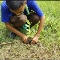 di mulai dari sekitar buper kami menanam sekitar 32 pohon untuk penghijauan di area buper, selanjutnya kami bergerak ke sekitar pemukiman masyarakat, untuk menanam sekitar 56 pohon, selanjutnya kami menanam di pinggir tebing dan jalan raya sekitar 87 pohon, kami tidak hanya menanam, tapi kami juga memupuk nya, dan kami beri pembatas di sekitar pohon nya, supaya tidak ada yang merusak,