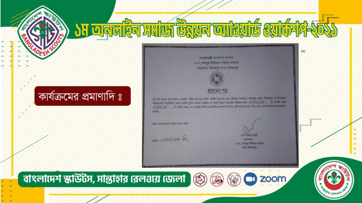 CD Award of Community Development Award is a major award in Scouting and Rovering. Bangladesh Scouts, Santahar Railway District Scouts Group organised a 4 day long virtual workshop that teaches scouts how to achieve the CD Award and necessary actions for it. The main inspiration behind my participation was the knowledge regarding CD Award.