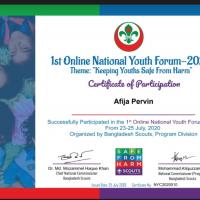 "Keeping Youths Safe From Harm" এই থিম কে সামনে রেখে গত ২৩ জুলাই ২০২০ থেকে ২৫ জুলাই ৩দিন ব্যাপী অনলাইনে অনুষ্ঠিত হয়েছে "1st online National Youth Forum-2020"।