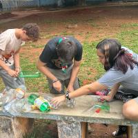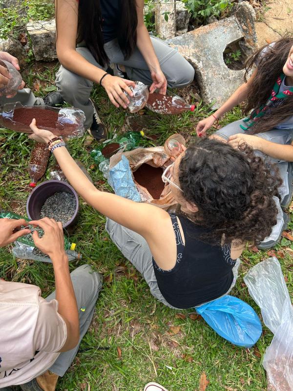 Decidimos fazer esse projeto porque percebemos que, em nossos acampamentos, quase nunca levávamos temperos e, quando levávamos, eram industrializados. Por isso, criamos essa iniciativa: plantar nossos proprios temperos naturais e reutilizar garrafas plásticas que foram descartadas incorretamente.