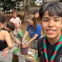 Combinamos entre nós que cada um contribuiria com algo, como: arame, terra, adubo e garrafas. Logo após, marcamos o dia na sede para fazermos nossas mini-hortas. Depois disso, cada um cuidou da sua própria plantinha até o dia do nosso acampamento de tropa.