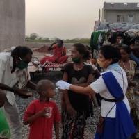 आम जन को काढ़ा पिलाते हुई स्काउट गाइड केप्टन जयलता माधव