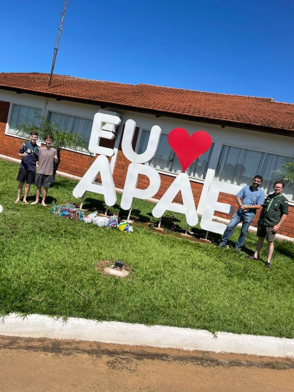Sabendo da existencia de um projeto de arecadação na APAE, que consciste em a cada 250kg de tampinhas eles podem fazer uma troca por uma cadeira de rodas, assim fizemos divulgação entre familias, conhecidos e via internet, arrecadamos, recolhemos e fizemos a entrega para a instituição.