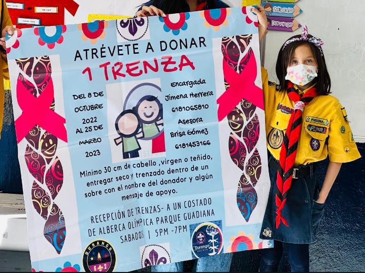 En colaboración con mi compañera de manada Sona y yo y con asesoría de la Caminante Brisa quien en su paso por manada llevó a cabo el proyecto, visitamos a diversas escuelas para concientizar acerca de la importancia de poder donar nuestro cabello y poder hacer felices y mas llevadero el proceso d quienes están luchando contra esta enfermedad. Publicamos a través de redes sociales la invitación de nuestro proyecto de Atrevete a Donar una trenza.