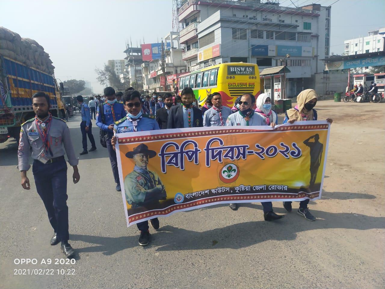 বাংলাদেশ স্কাউটস কুষ্টিয়া জেলা রোভারের আয়োজনে জেলা প্রশাসকের কার্যালয় হতে র্যালি শুরু হয়ে কুষ্টিয়া জেলা রোভার এর অস্থায়ী কার্যলয় কুষ্টিয়া সরকারি কলেজে শেষ করে। কুষ্টিয়া সরকারি কলেজ শিক্ষক মিলতয়ানে কেক কাটা হয়।