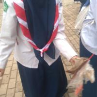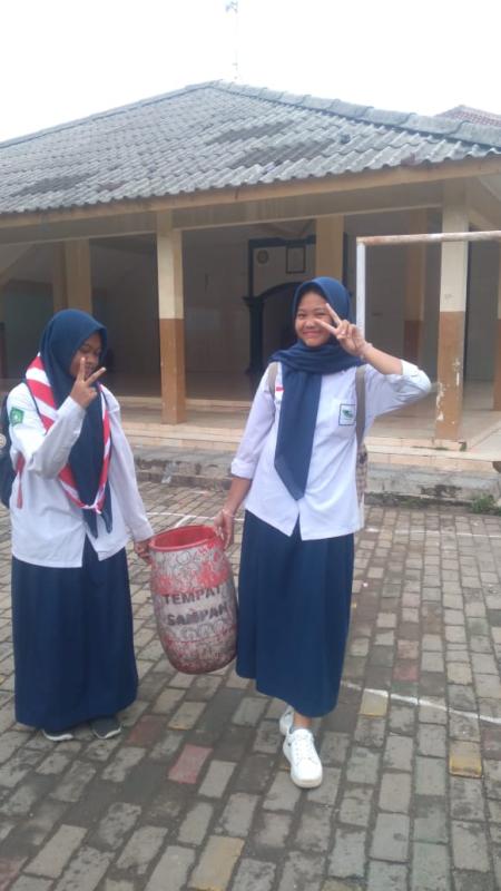 saya dan teman-teman pramuka saya membantu siswa siswi membersihkan lingkungan sekolah dari sampah berserakan dengan cara memunggut sampah lalu membuangnya ke tempat sampah