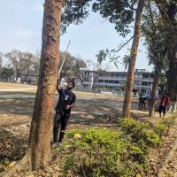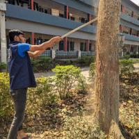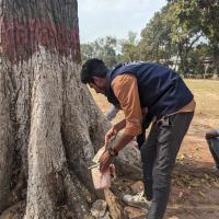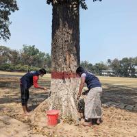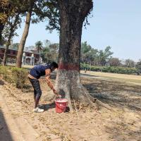 নিজ ইনস্টিটিউট এর বৃক্ষগুলো অতিরিক্ত গরম ও দীর্ঘ দিন বৃষ্টি না হওয়ায় পোকা হামলা দেয় গাছগুলোতে। সেই গছগুলোর পোকা দমন করে পানি দিয়ে ভালোভাবে পোকা আক্রমন করা জায়গাটি পরিষ্কার করি।শুকায় গেলে তখন নিচে থেকে বেশ কিছু উপর পর্যন্ত রং করি যেন পোকা আক্রমণ করতে না পারে। এটি দলবদ্ধ ভাবে করি।