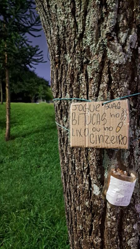 ui inspirada a desenvolver este projeto não apenas para conquistar a insígnia, mas também porque sempre me incomodou ver bitucas de cigarro espalhadas pelas praças. A cada passo, observava de duas a três bitucas no chão, sendo que cada uma delas demora, em média, 5 anos para se decompor. Nesse momento, pensei: "Por que não fazer algo simples, mas que, ao sensibilizar as pessoas, possa contribuir para a limpeza das praças e para o descarte correto?".