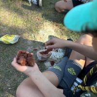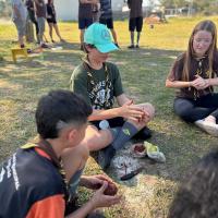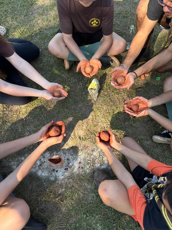 Compramos os materiais e criamos um vídeo que foi postado nas redes socias dos jovens envolvidos (TikTok e YouTube do nosso Grupo Escoteiro) e depois auxiliamos os jovens de outros ramos do nosso grupo na hora do preparo das bombas de sementes e do arremesso para plantio.