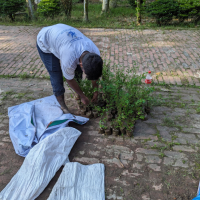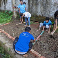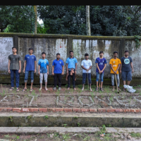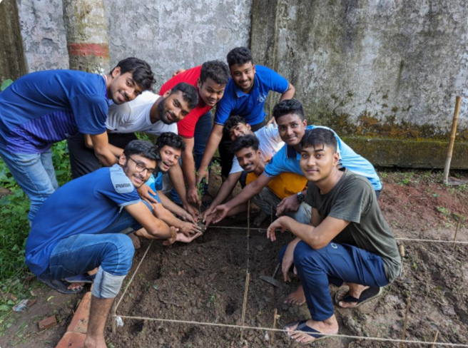 First, we form a team. Next, we plan how to carry out the project. According to our plan, we select a location for planting, purchase the trees, and go there to begin the work. Then, we write "BPI Rover" on the ground. After that, we start planting the trees as planned.
