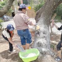 El proyecto de la unidad "Sócrates" de La Salle, en colaboración con las OTB "Óscar Alfáro" y "Villa Juan XXIII", abordó la limpieza y el encalado de árboles en el lado sur de la laguna Coña Coña. Tras una inspección el 22 de noviembre y la coordinación logística con líderes locales, se compraron materiales y se ejecutó la jornada el 30 de noviembre, logrando recoger basura y encalar árboles gracias al esfuerzo conjunto de scouts e invitados.