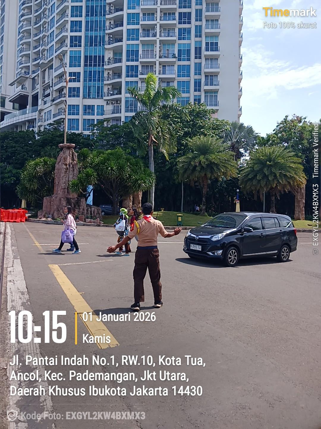 Here’s the English version: “Pramuka saka bhayangkara, the North Jakarta Metro Police conducted extra patrols during the holiday weekend at Taman Impian, Ancol. ,directing traffic, helping visitors, and keeping security tight so the holiday feels safe and peaceful. Guests can enjoy the park’s atmosphere, music, food stalls, and entertainment without worry, because the police are ready.