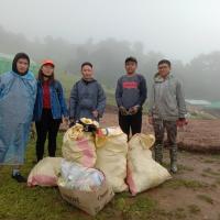As a Visitor to ths sacred place, We shall make a habit of carrying our waste with ourself. Or, we shall keep the wastes wrapped in big plastic and hang on left or right side of the trial to ease the our volunteers. Also, concerned authorities are trying their best to cope with waste management.Thus, let's join our hands together.