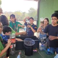 Aprendemos os impactos do lixo na natureza, aprendemos sobre o trabalho das minhocas na natureza, aprendemos como montar uma composteira caseira e que tipo de alimentos podemos colocar nela.