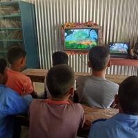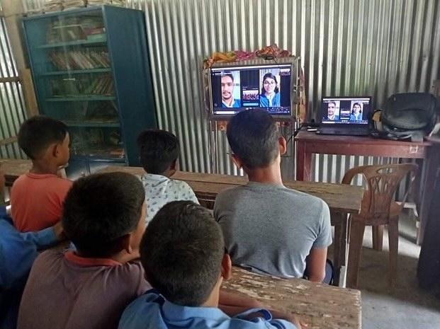 Rover and Girls-in Rover members of the Crystal Open Scouts take online classes with the help of solar panels for school children at the Char without electricity in Lalmonirhat.