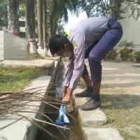 আমাদের প্রাঙ্গণে পাশেই ড্রেনের ময়লা আবর্জনা পরিষ্কার -পরিছন্নতা করছি।