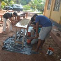 The project was implemented at Sri Wijayarama Raja Maha Viharaya and was implemented on 2 days. On the first day the pre coat on the newly built tables was applied. On the second day, the hall in which the Dhamma School was cleaned and the new tables were painted alongside several of the existing tables