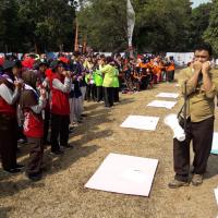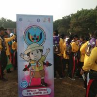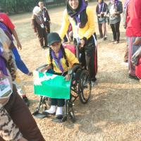 400 Disability scouts camps and learn on disaster preparedness trough song, games and evacuation simulation call SIGAB (Siapsiaga Bencana/Disaster Preparedness)