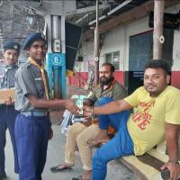 A program was held today at New Jalpaiguri Junction Station by distributing a fresh drinking juice to all the peoples present at the station, under the initiative of "NORTHEAST FRONTIER WOMEN'S WEL FARE KATIHAR DIVISION" and in collaboration with "The Bharat Scouts and Guides NJP District Association