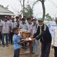 Members of Crystal Open Scouts Group initiated the project on 03/18/2023 at Scout Char ,Lalmonirhat , Bangladesh . We arranged some textbooks, colors geometry box and insufficient things and assist some respectable teachers of this school to distribute books and the materials properly.