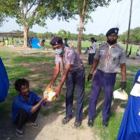 Due to the covid-19 epidemic, under the direction of Assistant Regional Organization Commissioner Prayagraj Mr. Pradeep Gupta and Ms. Usha Kushwaha ALT. Ration packet distributed to poor helpless men and women by District Organization Commissioner Kaushambi Shri Shyam Babu Yadav and District Training Counselor Mr. Gaurav Sharma, Mrs. Kirti Shrivastava, Rover Shubham Shrivastava today, on 27th June, in collaboration with Ranger Leader was done this work.