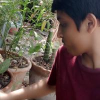 i am planting some plant on garden with my brother "go green " "save earth"