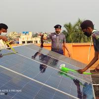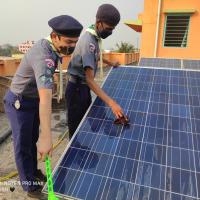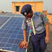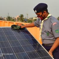 Scouts of Howrah Vivekananda Institution Scout Group and Rovers of Swamiji Rover Crew participated in a maintenance drive of Solar system on the roof of Howrah Vivekananda Institution to #saveelectricity