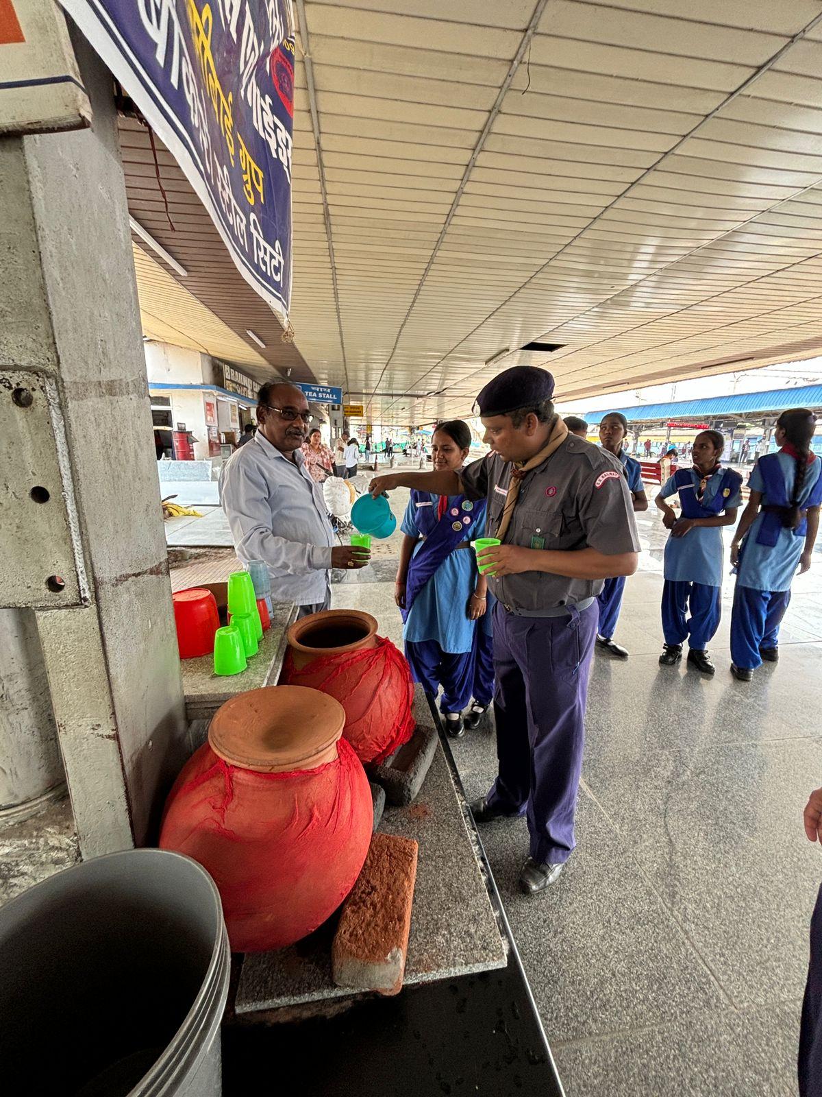 Firstly we take permission from the Authorities and group then we purchase all the things which are required in the water service. We discussed our plan to Station Superintendent. He was very happy after listening our ideas and aim. So, we brought earthen pots, Steel glasses, strainers and other essential items. Then we are divided in to 4 teams for the service.