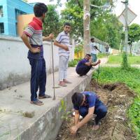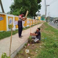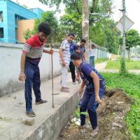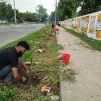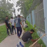 Inspired by last year's success, our monsoon plantation drive has begun again. Today, seniors, juniors, uncles, nephews, and students home for Eid vacation enthusiastically planted trees on the abandoned land beside our roads. We aim to plant 1,000 trees in our area, and today we planted 500 arjun, almond, mahogany, and jamun saplings from Chandmari intersection to the election office. Our green revolution targets planting 100,000 saplings in the next five years.