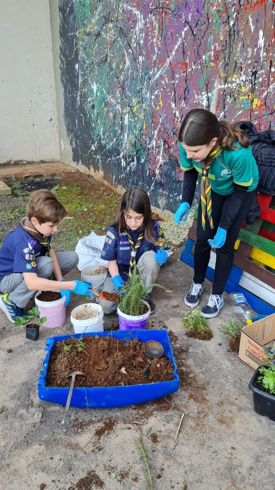 Nosso maior objetivo era buscar uma forma de transformar alguns materiais, que poderiam ser descartados de forma incorreta na natureza, e dar-lhes novos usos além de proporcionar conhecimentos para os membros da Tropa Escoteira e da Alcatéia sobre o uso de plantas medicinais.