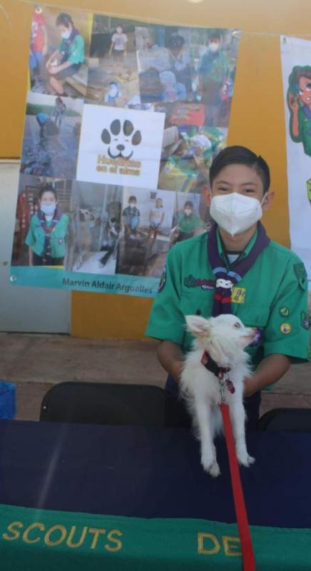Marvin Aldair Alonzo Arguelles, integrante de tropa Mia Trigris del Grupo 15 en Mérida. Yucatán México. la inspiración de su proyectos, fue debido a una experiencia que tuvo con su mascota. "un día se escapo mi mascota de mi casa y sin un lugar donde refugiarse y alimentarse, se quedo en la calle, la encontramos sana y salva. Después pensé en los perros, gatos que no tienen un hogar y pasan el día en la calle". Decidí ayudar a los perros del Albergue "Hogar colitas"