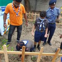Firstly they meet at their school premises under the able leadership of their cub master Mr. Sanjoy Ghosh who coordinated the entire program starting from arranging the plant saplings to locating a suitable position to dig the plants. The scouts and guides then went onto field to dig holes, plant the trees and finish their responsibility towards a better environment.