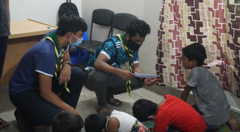Providing literacy to street children and underprivileged children and teaching them to write their own names and parents' names and feeding them mid-day meals.