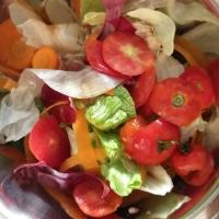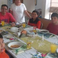 Con la alimentación sostenible buscamos comprar más local y no comprar en supermercados. Lo que pasa es que en el mercado la fruta y verdura no está en refrigeradores ni envuelta en plástico, dura más tiempo y hay que limpiarla porque hasta trae algo de tierrita. Mientras la verdura y fruta de los supermercados está muy refrigerada, tiene una cubierta en la piel y usan esas bolsas o contenedores, que aunque se ve muy bonita las frutas y verduras, generamos contaminación. En el trabajo de este nivel, se pedía que compartiéramos una comida sostenible, así que invitamos a mi abuelita a comer a la casa: sopa de tortilla con orégano del jardín, papas asadas con romero y tomillo (también de jardín), carne de res con pimienta, tiras de pollo empanizada y al horno, agua de mandarina (del jardín de mi tío). Muy rico que estuvo todo. Aprovechamos para no usar plásticos en la comida. Mi mamá usa todos los sobrantes de vegetales y frutas para echarlos al jardín. En últimas fechas hemos visto a un cacomixtle (animal mamífero omnívoro, parecido al mapache, que vive en la zona donde vivo) que baja al jardín a comerse esos sobrantes.