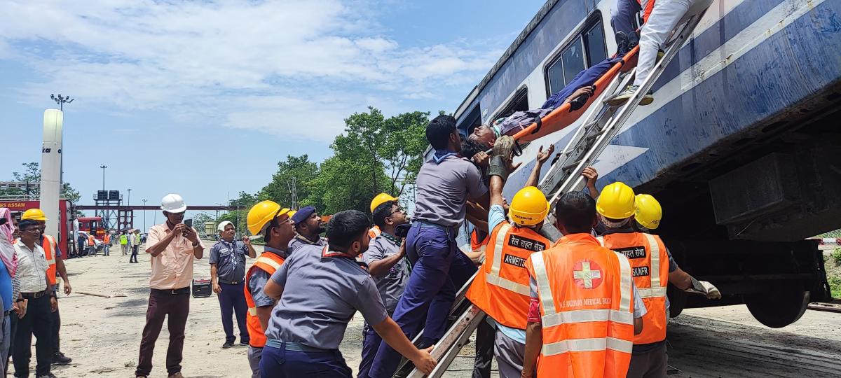 To enhance emergency response capabilities, assess staff preparedness and safety equipment readiness, N. F. Railway, Tinsukia Division successfully conducted a joint Mock Drill with NDRF at Dhamalgaon Railway Station on 24 May 2024.