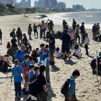 CONHECER: fotografavam os problemas encontrados durante a jornada e anotavam os dados para uma consulta posterior na sede dos Grupos para debaterem melhor. COOPERAR: Todos os lobinhos tiveram que trabalhar juntos buscando soluções para os problemas encontrados ATUAR: Munidos de sacolas e muita boa vontade, foram catando lixo nas areias mesmo debaixo de sol quente. Na segunda parte mostraram a criatividade em construir uma escultura de baixo relevo com todo o lixo que encontraram na areia.