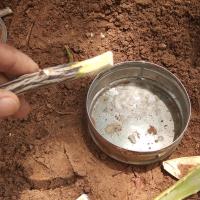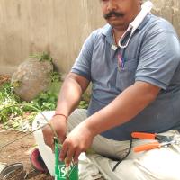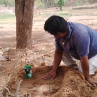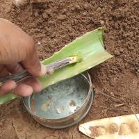 आज मेरे साथी मनोहर जी के साथ कलम रोपण किया।सबसे पहले जिस की कलम करनी है उस पौधे की पेंसिल के आकार या उससे बडी डाली को तिरछा काट कर अलग कर लेते है।उपर वाले सिरे पर मोम लगा कर बंद कर देते है। नीचे वाले सिरे पर ग्वारपाठा या सहद लगा कर कलम के टुकडे को जमीन मे रोप देते है फिर पानी डाल देते है।