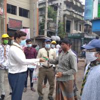 করোনাকালীন সময়ে মাস্ক ও লিফলেট বিতরণ