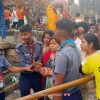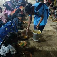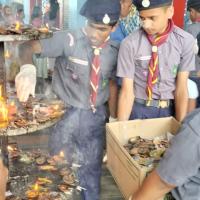 160 Numbers of Rovers & Rangers were called for the service Camp. They reported on the 25th of February and cleaned the premises. The next day morning the service team was being led to different temples as per the allotment. They were divided into groups and allotted different duties such as distribution of water, water sprinkling, carrying the sick persons, maintaining the cleanliness of the temple premises, keeping discipline etc.