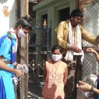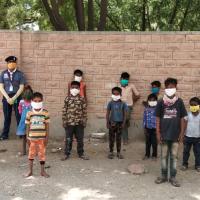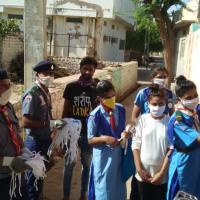 with my team ready for work to distribute mask in local poor area. my team bhawna 350,sarla400,gajraj400,santosh400,i 1000 mask distributet in area
