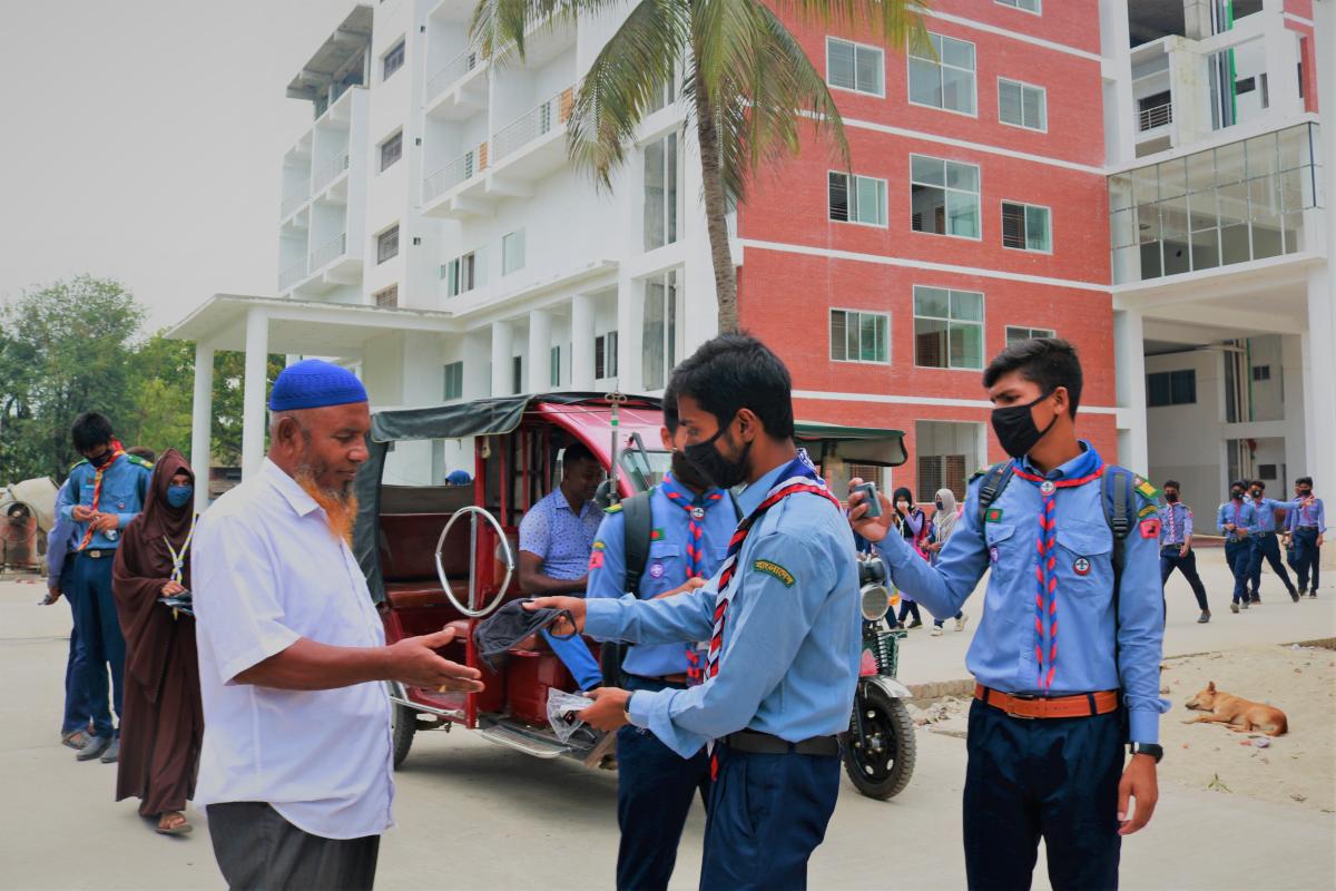 We are implementing a mask distribution program in the Natore district. We distributed masks to the public with 100 scouts. On April 8, we held the program.