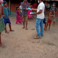 One vehicles fully loaded with boxes of soaps and masks leave the team at 7.00am in the morning and are taken to the four distribution points established around Pokharibandha Gram Panchyat name as irkuli,Melagutu,Jarenpata,Karlakupa. At each point a team is already waiting to receive the items, and quickly supply them . We are going door-to-door distributing soaps and masks to the villages. People in my area live very close to each other, and there are obvious risks of spread of COVID-19,” s as a distribution point. “This distribution is providing people with ways to protect themselves and also increasing their knowledge about the virus.”