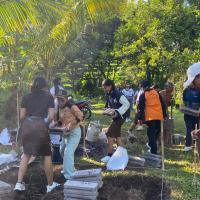 kami memiliki sebuah tim pramuka yaitu pramuka peduli, tim tersebut kami kerahkan untuk membantu pembangunan ulang sebuah rumah yang di miliki seorang kakek yang hidup sebatang kara tanpa ada nya keluarga dan jauh dari pemukiman