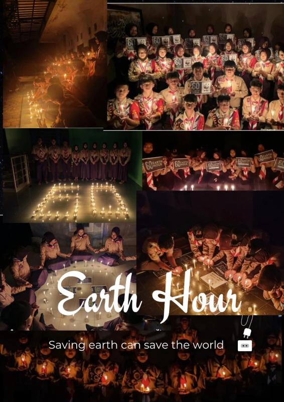 Kegiatan ini adalah kegiatan tahunan yang kami laksanakan. Kegiatan ini diinisiasi oleh WWF yang kemudian kami laksanakan sebagai bentuk suport kami tentang pemanasan global. Melalui scout project SDGs saya sebagai founder mengajak anggota untuk melaksanakan kegiatan tersebut. Dengan tata cara pukul 15.00 - 20.00 WIB adalah sosialisasi lingkungan masing-masing tentang Earth Hour.. Kemudian pukul 20.30 - 21.30 adalah action mematikan lampu selama 1 jam lebih.
