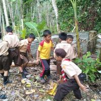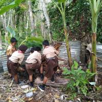 Pertama saya menerapkan di lingkungan sekolah tempat saya bekerja sampai menyebar ke lingkungan warga